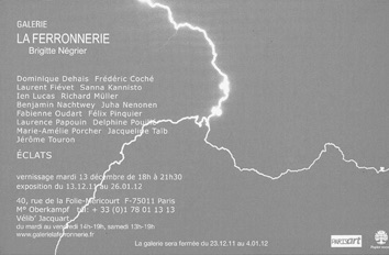 with Dominique Dehais, Frédéric Coché, Laurent Fiévet, Sanna Kannisto, Ien Lucas, Richard Müller, Benjamin Nachtwey, Juha Nenonen, Fabienne Oudart, Félix Pinquier, Laurence Papouin, Delphine Pouillé, Marie-Amélie Porcher, Jacqueline Taïb, Jérôme Touron
